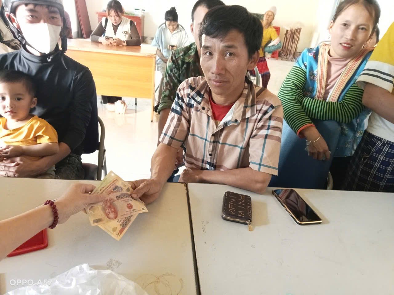• Đồng chí Trịnh Hoàng Thắng - Bí thư Đảng ủy xã trao tặng quà cho 15 hộ dân bản Huổi Sang