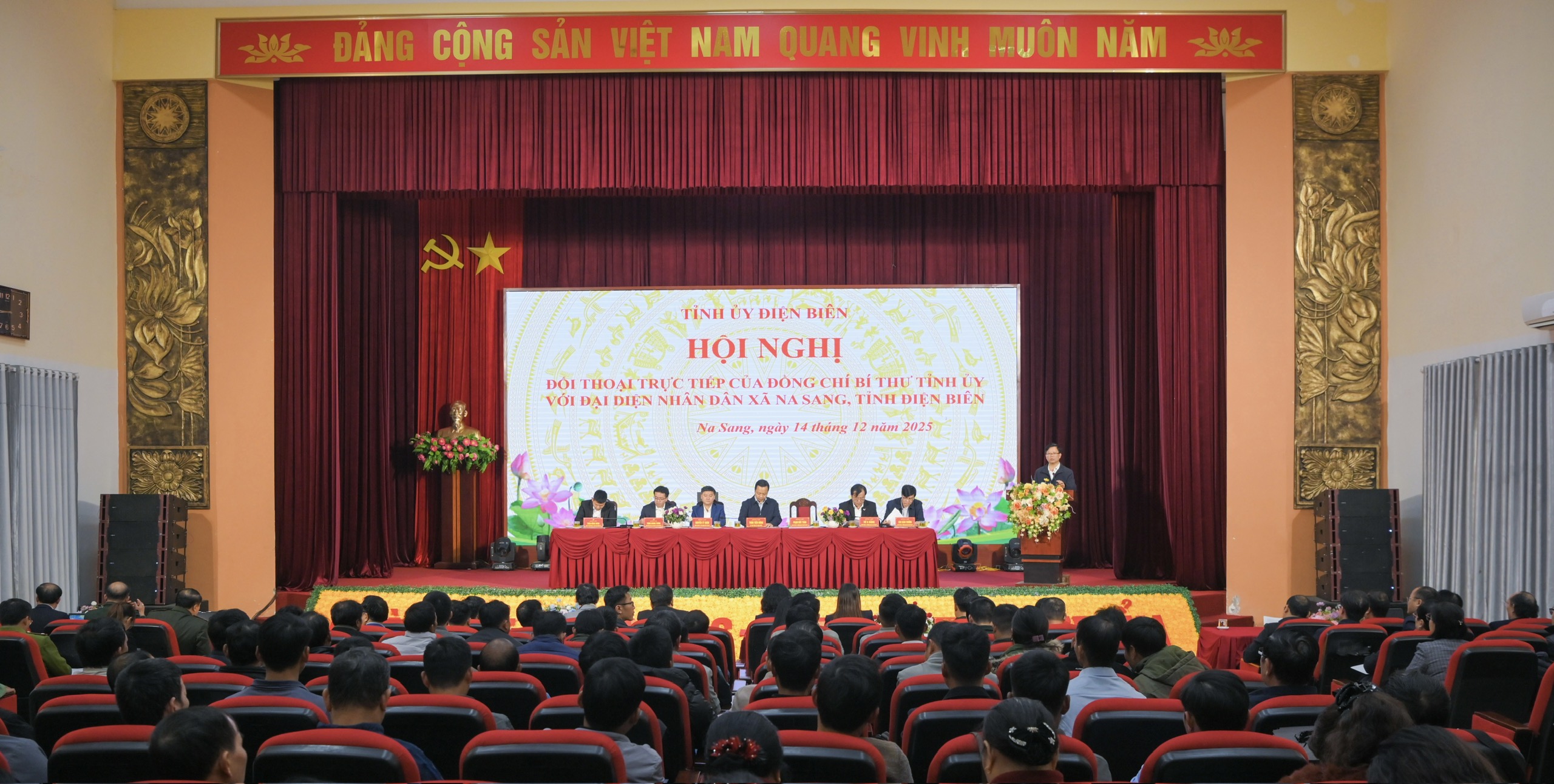 • Sáng 14/12, tại Trung tâm hội nghị văn hóa xã Na Sang, đồng chí Bí thư Tỉnh ủy Trần Tiến Dũng đã có buổi đối thoại trực tiếp với đại diện Nhân dân xã Na Sang. Dự Hội nghị đối thoại có các đồng chí Ủy viên Ban Thường vụ Tỉnh ủy; Thường trực HĐND, lãnh đạo UBND tỉnh; lãnh đạo UB MTTQVN tỉnh; đại diện Đoàn Đại biểu Quốc hội tỉnh; lãnh đạo một số ban, sở, ngành tỉnh.